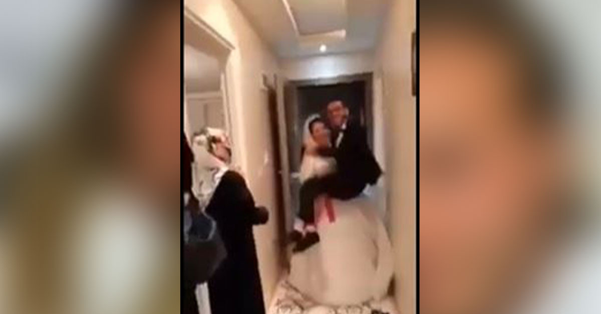 Düğünün günü gerçekleşen birçok adetten biridir gerdek gecesi. Genelde damat gelini kucağına alarak birlikte yaşayacakları evin kapısından girerler. Ancak bu talihsiz damat gelini kucağına alamayınca bakın ne yapmış. Biraz sonra olacaklardan habersiz gelin ve damat birlikte yaşayacakları evin kapısından içeri mutlu bir şekilde giriyorlar. Akrabalar dostalar oradalar video çekiyorlar bu mutlu anı ölümsüzleştirmek için.