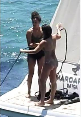 Arkadaşlarıyla birlikte mavi tura çıkan güzel oyuncu, önceki gün de Bodrum'da denize girerken görüntülendi.