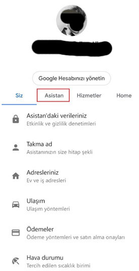 Bu noktadan sonra ayarlar sayfasından üst başlıklarda yer alana Asistan’ı seçmelisiniz.