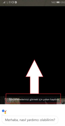 Google Asistan özelliğini devre dışı bırakmak istiyorsanız ilk olarak cihaz kilidinizi açın. Daha sonra ekranın altında bulunan ana ekran tuşuna basılı tutarak yukarı kaydırın. Asistan açıldıktan sonra bu ekranı büyütmek için yine ekrana dokunun.