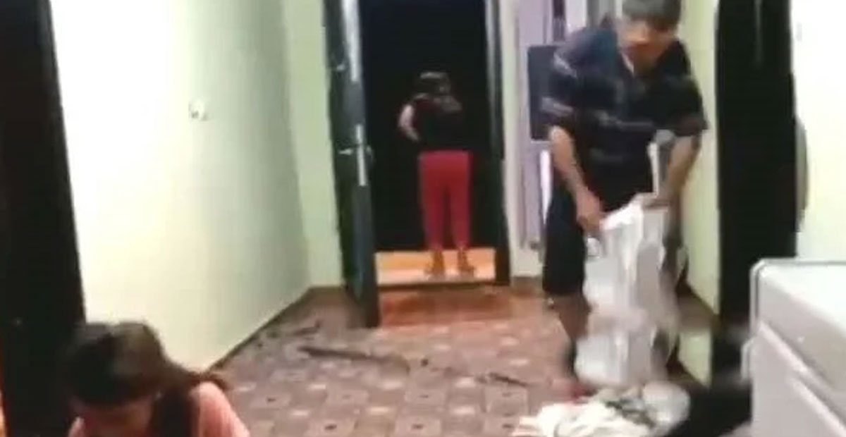 Vahşi adam, evlatlarının gözünün önünde ve çığlıklarına aldırış etmeden karısına bayıltana kadar vururken, o kabus anları çocuklardan biri tarafından cep telefonu kamerasıyla kaydedildi. annelerinin bayıldığına şahit olan çocuklardan birinin, babasına elindeki sopayla karşılık verdiği anlar da o görüntülerde yer aldı.