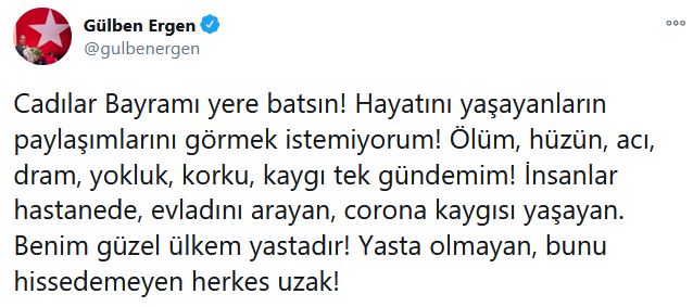 Sosyal medyayı aktif olarak kullanan ünlü şarkıcı gülben ergen, twitter sayfasında yaptığı paylaşımda şu ifadeleri kullandı: