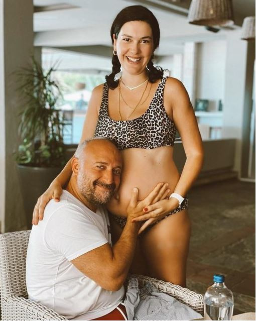 Leopar desenli bir bikini giyen Korel, eşinin göbeğine sarıldığı bu fotoğrafı, 'Leyla ile sabah kahvesi' notuyla yaklaşık 2 milyon takipçisinin bulunduğu Instagram hesabından paylaştı.