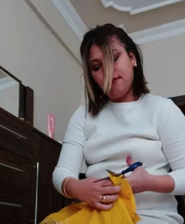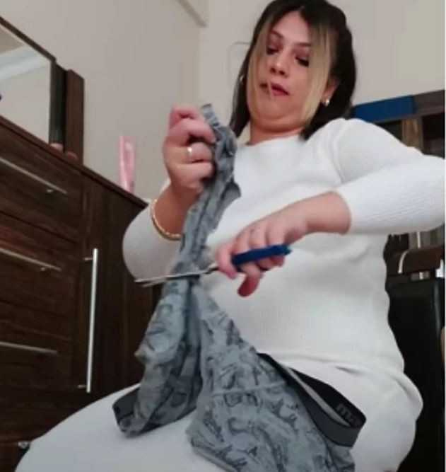 Hatta kendisinin kocasına taksitle aldığı pahalı bir sweat shirt'ü de acımadan makaslıyor. "Hamile karını 7 aylıkken ortada bıraktığın için ben de sana bunları bırakıyorum" diyen Tuğba, en son eşinin iç çamaşırlarını da kesiyor.