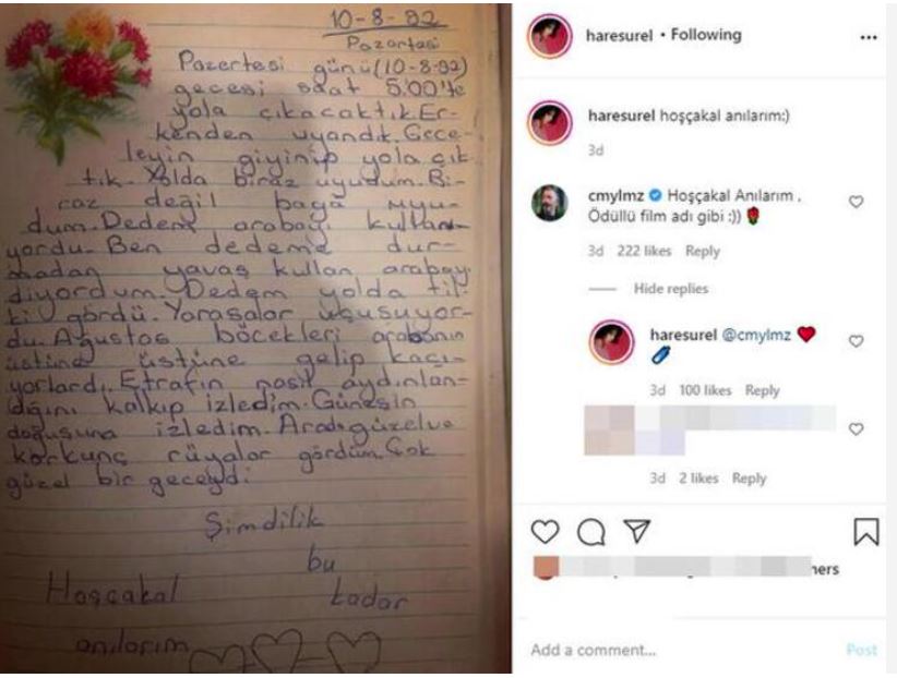 Hare sürel’in ünlü komedyene yaptığı yorumla ikilinin aşkı tekrar gündeme geldi. sürel, 1992 yılında tuttuğu günlükten bir sayfayı ‘hoşçakal anılarım’ notuyla paylaştı.
