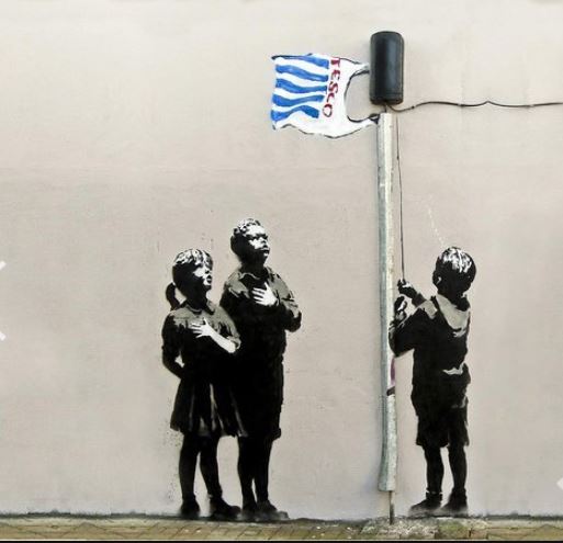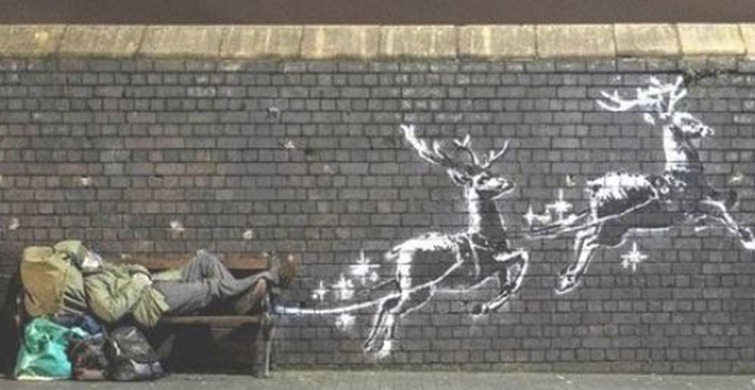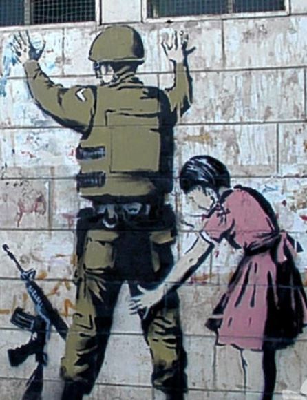 Pek çok ülkede çizim yapan banksy pek çok gönderme de yapıyor.