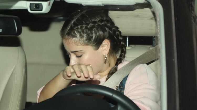 Samimi tavırlarıyla dikkat çeken ünlü oyuncu, koşar adımlarla merdivenlerden inerek kendisini bekleyen aracına bindi.