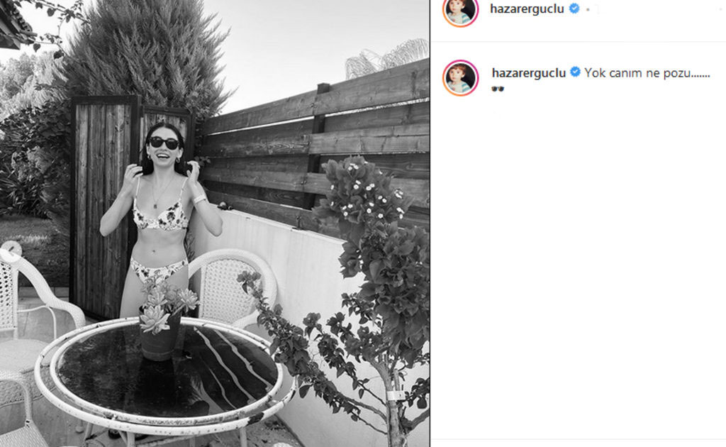 Bikinili pozlarını sosyal medya hesabından paylaşan hazar ergüçlü, 'yok canım ne pozu' ekledi. ünlü oyuncunun paylaşımı kısa sürede binlerce beğeni aldı.