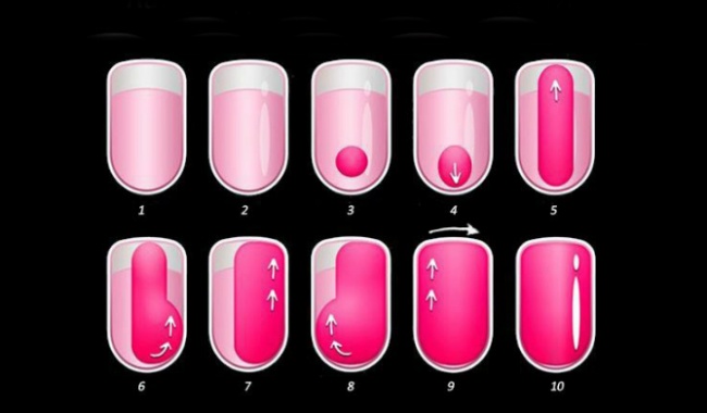 Düzgün boyalı tırnaklar elde etmek için yukarıdaki şemadaki adımları izleyin.