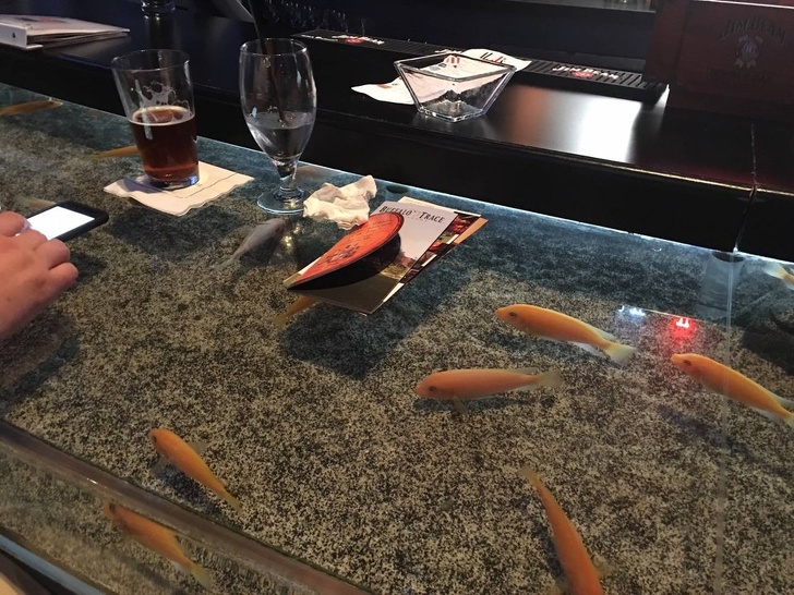Bu masanın içinde bir akvaryum vardır.
