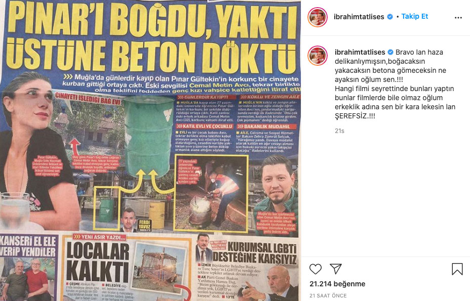 Tüm türkiye'yi yasa boğan pınar gültekin, cinayetinin ardından ibrahim tatlıses de katil zanlısına sosyal medya hesabından tepki gösterdi.