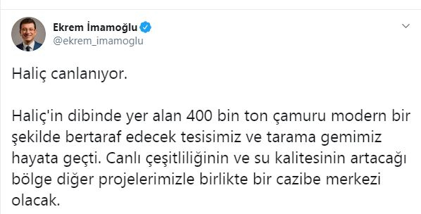Cumhurbaşkanı erdoğan'ın yoğun çalışmalarıyla bataklıktan istanbul'un incisi haline gelen haliç'i kendileri tarafından temizlemeye başladığı algısını yapan istanbul büyükşehir belediye (ibb) başkanı ekrem imamoğlu, yapılan çalışmanın videosunu da sosyal medya hesabından paylaşmıştı.