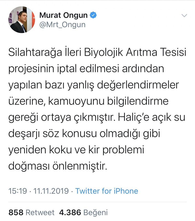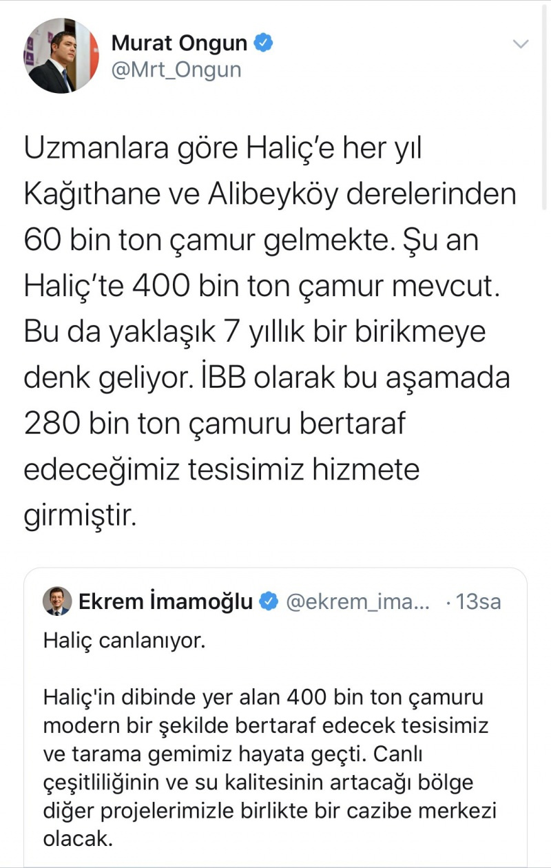 İstanbul büyükşehir belediyesi sözcüsü murat ongun, haliç hakkında attığı twetlerle 6 ay geçmeden kendisiyle çelişti.