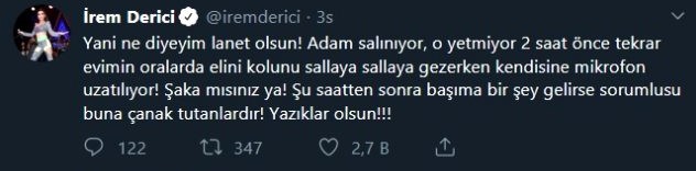 İrem derici, kendisini önce sosyal medyadan taciz eden sonra ise evinin kapısının önüne kadar gelen takıntılı hayranından şikayetçi olmuştu.