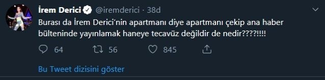 Burası da irem derici'nin apartmanı diye apartmanı çekip ana haber bülteninde yayınlamak haneye tecavüz değil de nedir?