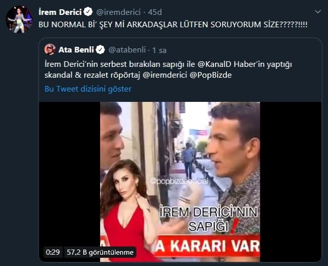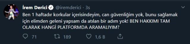 Birçok sosyal medya kullanıcısı, 'iremdericiyanındayız' etiketiyle ünlü şarkıcıya destek oldu.