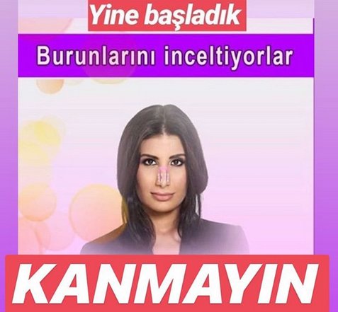 "ya yine bir kalpazan benim fotoğrafımı kullanıp 20 dakikada burun inceltme aparatı gibi salak bir şey satmaya çalışıyor.