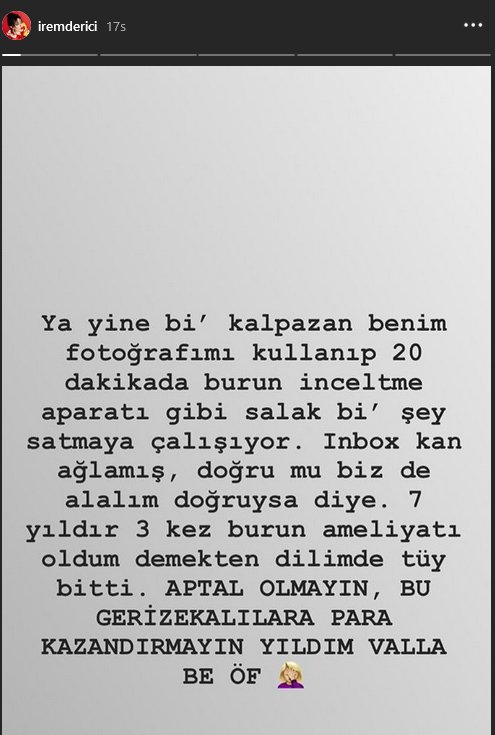 İrem derici, ınstagram hesabından yaptığı paylaşımla dikkat çekti.