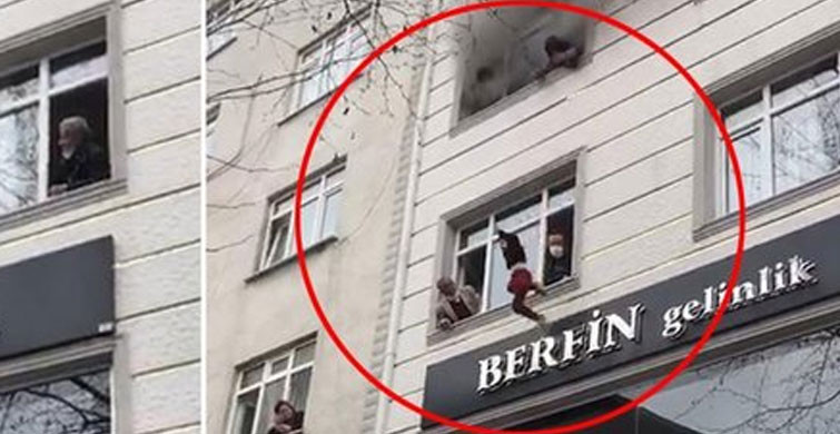 Yangından kurtulmak için evin penceresinden sokak üzerine serilen battaniyelere atlayan çocukların hayati tehlikesinin bulunmadığı söylendi.