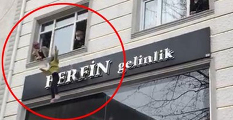 Dairede mahsur kalan küçük çocuk, yerde açılan battaniyeye atılarak kurtarıldı.