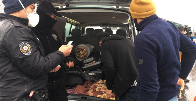 Coronavirüs salgını sebebiyle araçlarda kontroller yapılırken, bagajında yolcu taşıyan şoförün sosyal mesafe kuralını ihlal ettiği tespit edildi.