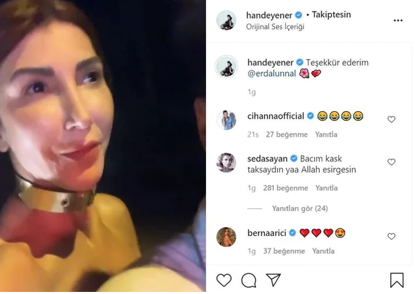 Sevilen şarkıcı Hande Yener motosikletli bir genci durdurdu ve yol boyunca motosiklet üzerinde seyahat etti. Hande Yener yaşadığı bu anları videoya çekmeyi de ihmal etmedi. Ünlü şarkıcı motosiklet yolculuğunu kayda alıp Instagram hesabından paylaştı. Yener, kendisini bırakan genci de paylaşımına etiketleyerek teşekkür etti.