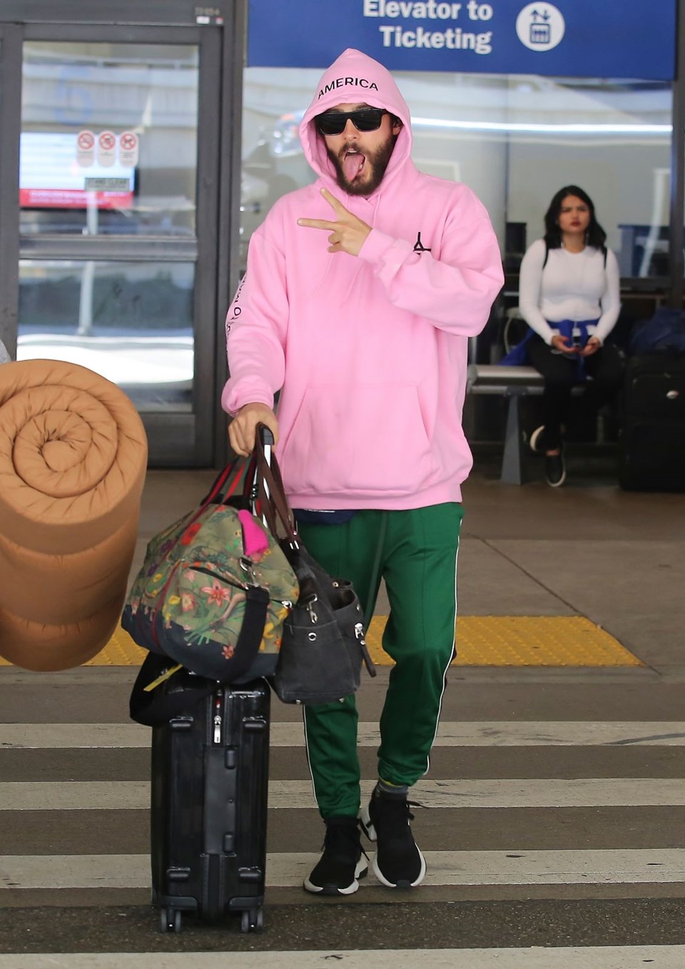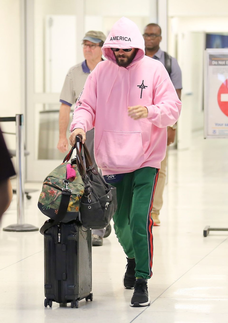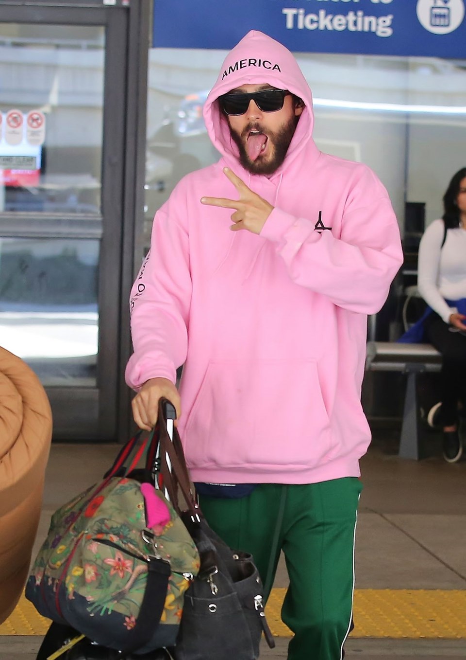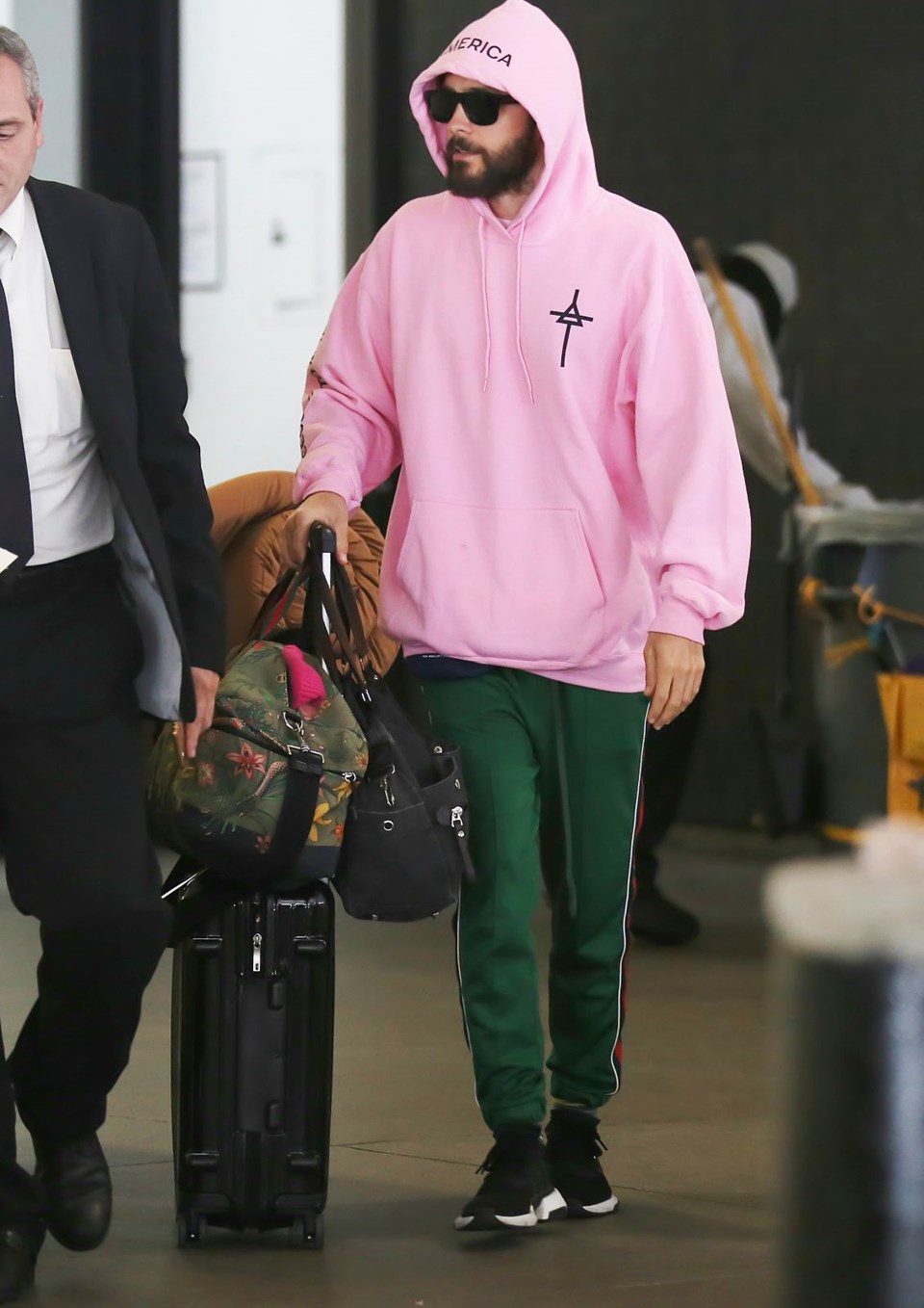 Los angeles uluslararası havaalanı’nda göz alıcı bir pembe kapüşonluyla objektiflere takılan leto’nun asıl sürprizi kıyafetinin sırtında gizliydi.