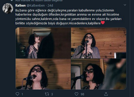 Bu sahne, kaldırım, oda bana ve yanımdakilere ev oluyor. bu şarkıları birlikte söylediğimizde büyü doğuyor. hissedenlere, kalplilere”