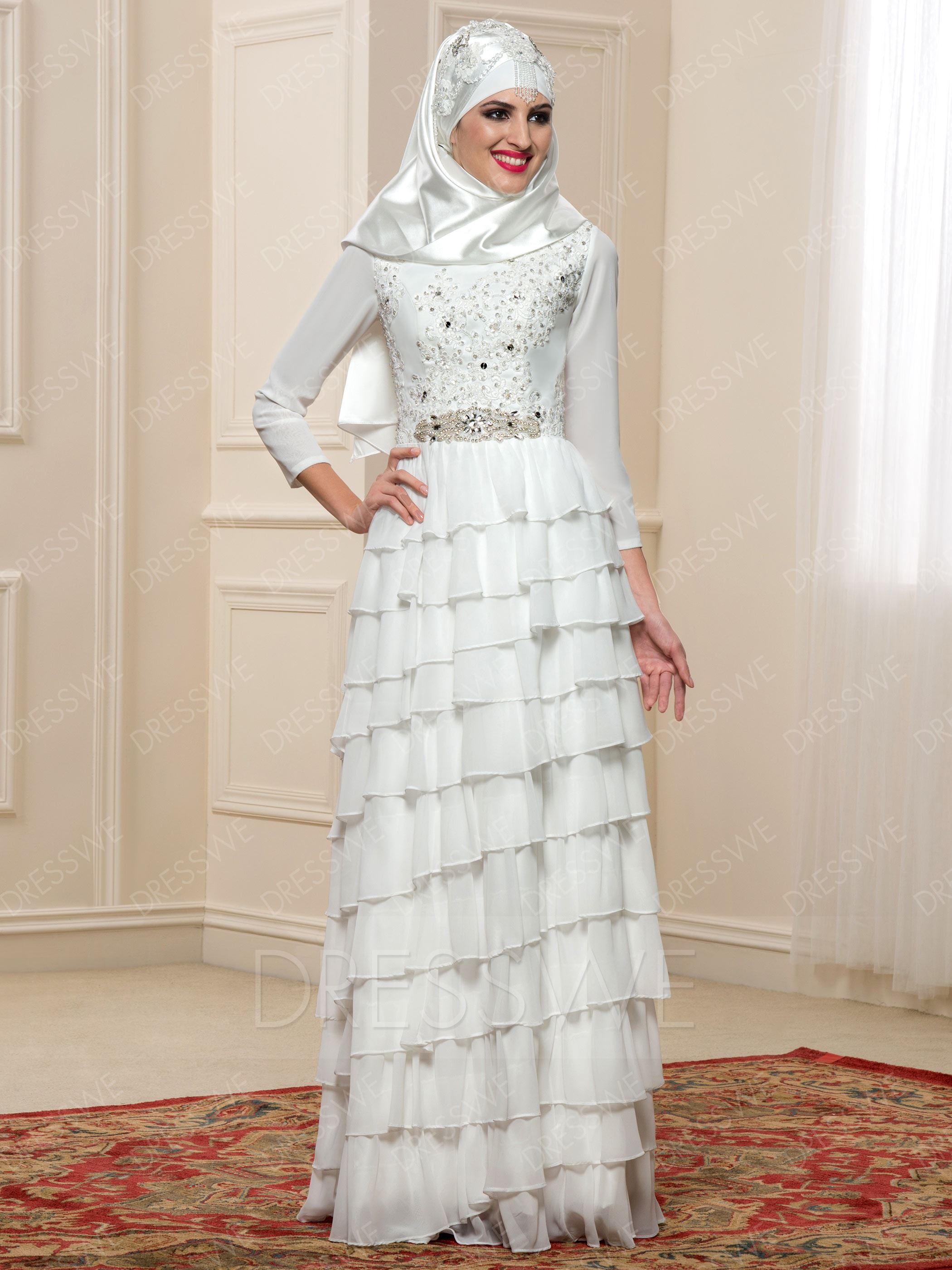 Bel ve basen bölgesindeki fazlalıkları kapatmanın en şık yolu olan bu hem kabarık hem kapalı prenses model tesettür gelinlikler, tesettür gelinlik moda evlerinin 2018 favorisi. tesettür modeller içinde gözünüze prenses güzelliğiyle vuracak.
