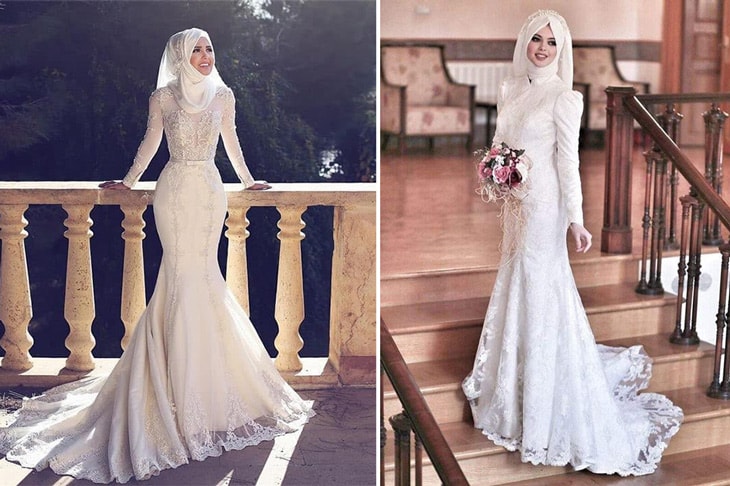 Balık model tesettür gelinlik tesettür gelinlik modelleri arasında şöhretini sürdürüyor. gelin adayları için adeta balıktan çok bir kuş gibi süzülmesinin anahtarı ve tesettüre olan uyumu muhteşem kapalı gelinlikler arasında. 2018 trendleri dantel işlemenin ön planda olduğu modellerle görücüye çıkacak gibi gözüküyor.