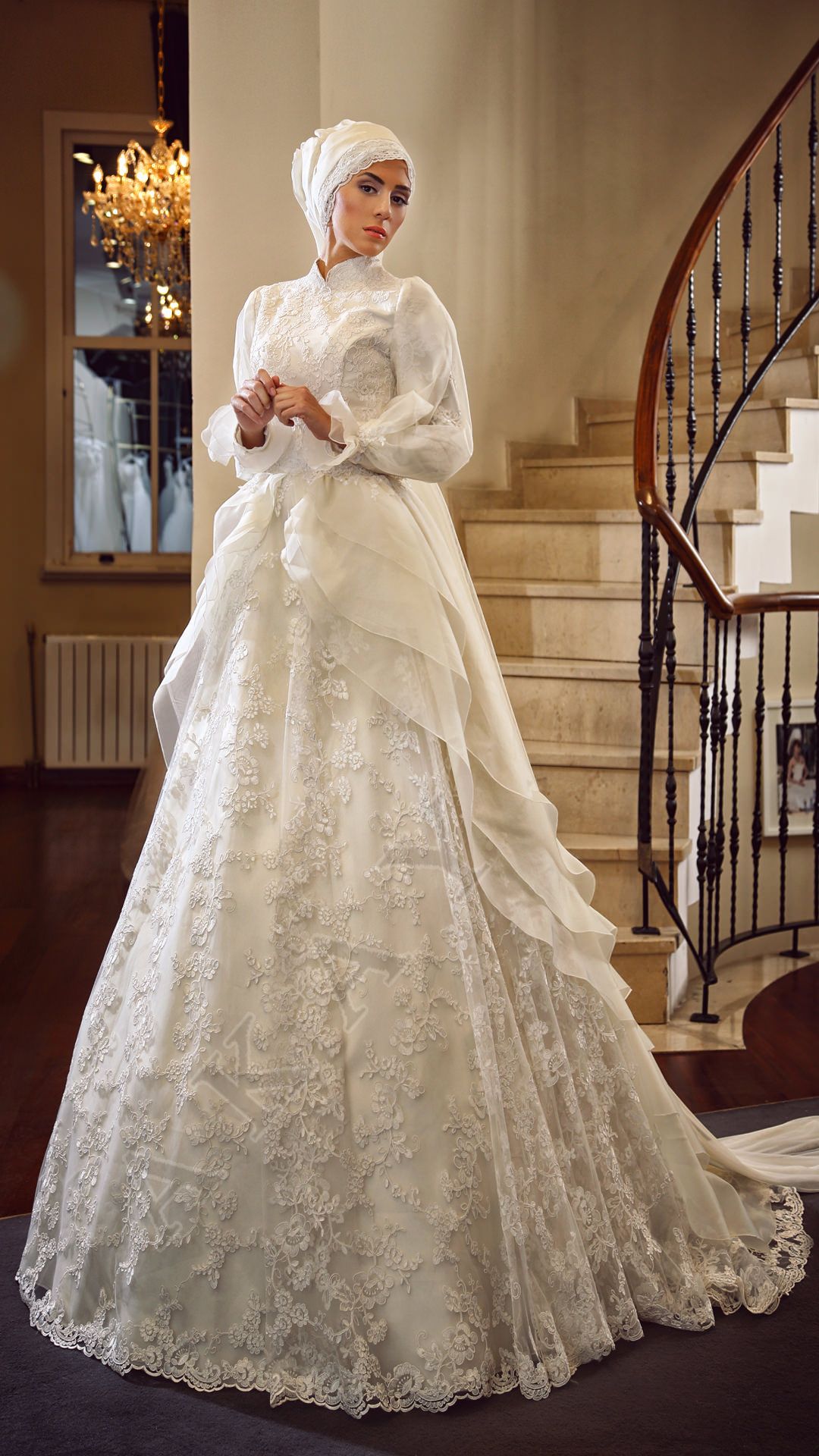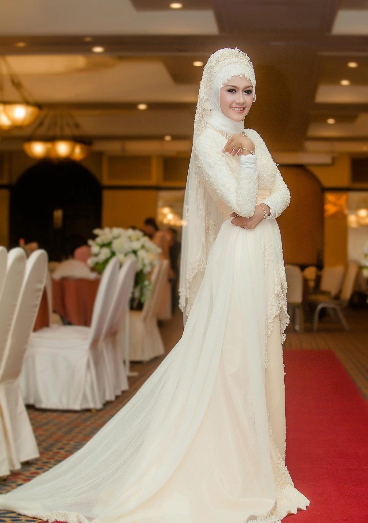 Tesettüre uygun modeller üretilmeye başlandığından beri tesettür gelinlik moda evleri bu modelin potansiyelini fark ettiler ve birçok değişik tarzda çeşit çeşit dantel kullandılar.