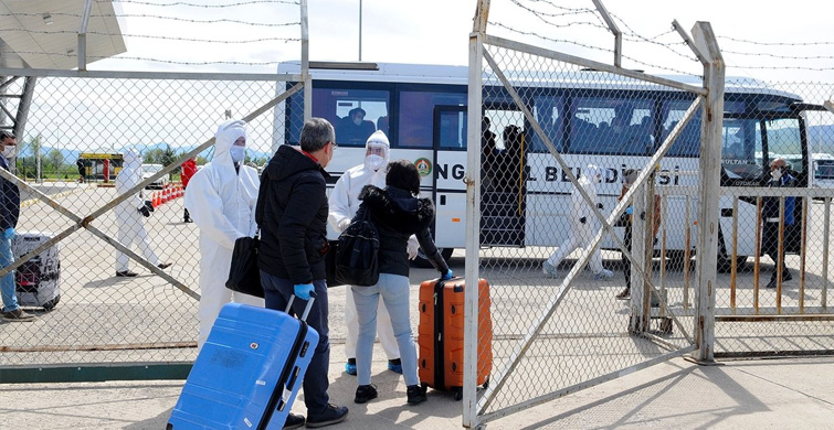 Uçaktan iniş yapan yolculara, görevliler tarafından maske verildi. apronda pasaport kontrolünden geçen ve sağlık taramasından geçirilen kişilerin valizleri, afad ve belediye ekipleri tarafından dezenfekte edildi.