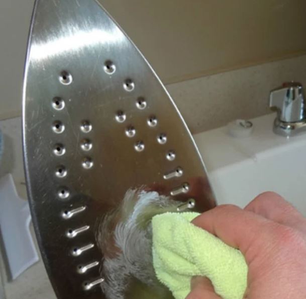 Hafif ısınmış bir ütüye mumu sürdükten sonra biraz bekleyip kalın bir bezi ıslatarak temizleyin. ütünün altı eskisi gibi parlayıncaya kadar bir kumaş ütüleyebilirsiniz.