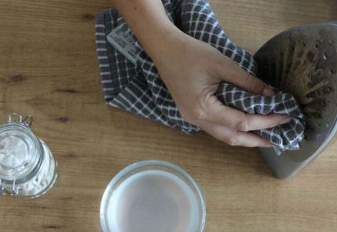 Bu karışımı tencerede ısıtmaya başlayın ve tuzun çözünmesini sağlayın. sirke kaynamadan bu işlemi tamamlayın. sonrasında temiz bir bezi sirkeye batırıp ütünüzün altını bu bezle temizleyin.
