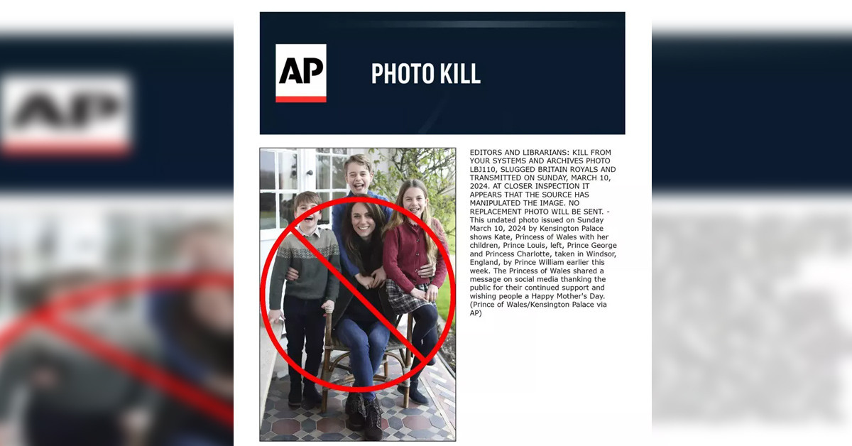Middleton fotoğrafı kendisine gösterilen yoğun ilgiye teşekkür ederek ve Anneler Günü’nü kutlayarak paylaştı. Ancak fotoğrafın Photoshop marifetiyle düzenlendiği, çocukların ellerinin duruşunun tuhaf olduğu, Kate’in parmağında yüzüğünün olmaması gibi sebeplerden sahte olduğu düşünülmüştü. Kensington Sarayı'nın paylaştığı fotoğraf için Associated Press (AP), Agence France-Presse (AFP) ve Getty Images, dünyanın dört bir yanındaki medya kuruluşlarına birer "Kill notice" (Fotoğrafın geçersiz sayılıp ajans tarafından iptal edilmesi) yolladı ve fotoğrafın paylaşımının durdurulmasını talep etti. Bunun duyulması ve basın kuruluşları tarafında haberleştirilmesiyle birlikte olay giderek büyüdü. Kraliyet ailesi aslında söylentileri yok etmek isterken bu fotoğrafla komplo teorilerini daha da güçlendirmiş oldu.