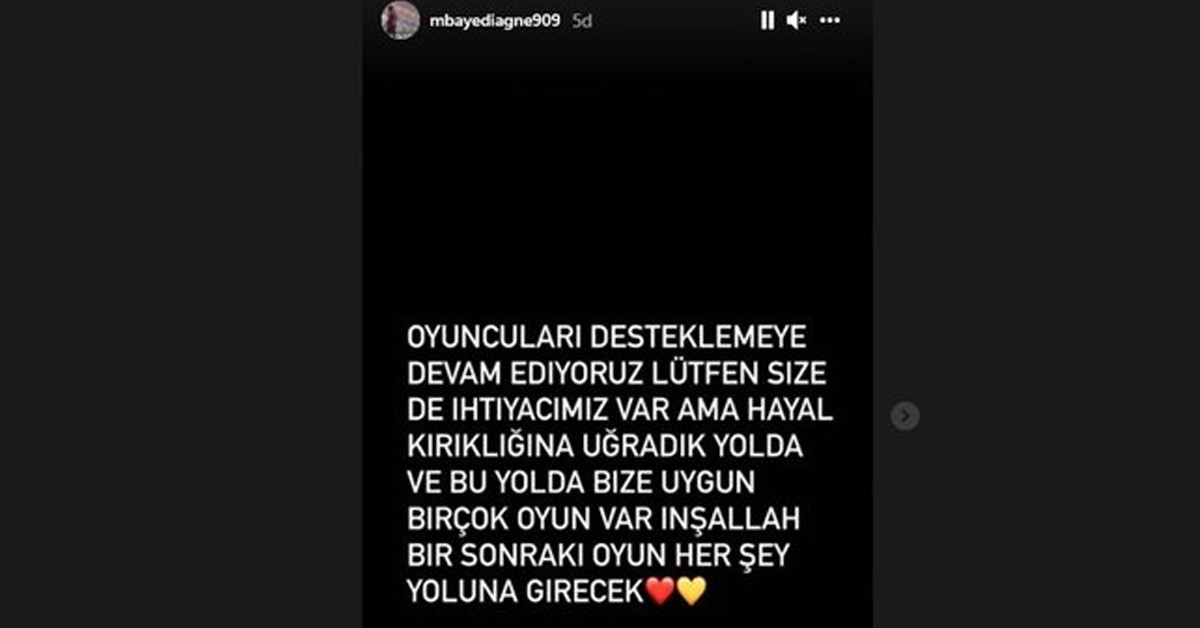 Kayserispor tarafından ağır bir yenilgi alan takıma taraftarlar yoğun tepkiler gösterdiler. Galatasaray cephesinde moraller bozukken, Galatasaray'ın futbolcusu Mbaye Diagne sosyal medyadan bir paylaşım yaptı.