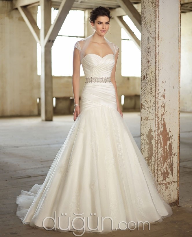 Üst bedeniniz zayıf ise kemerli gelinlik modelleri ile üst bedeninizi normal ölçülere getirebilirsiniz. dümdüz sade bir gelinlikte taşlı kemer detayı emin olun ki herkesin dikkatini çekecektir.
