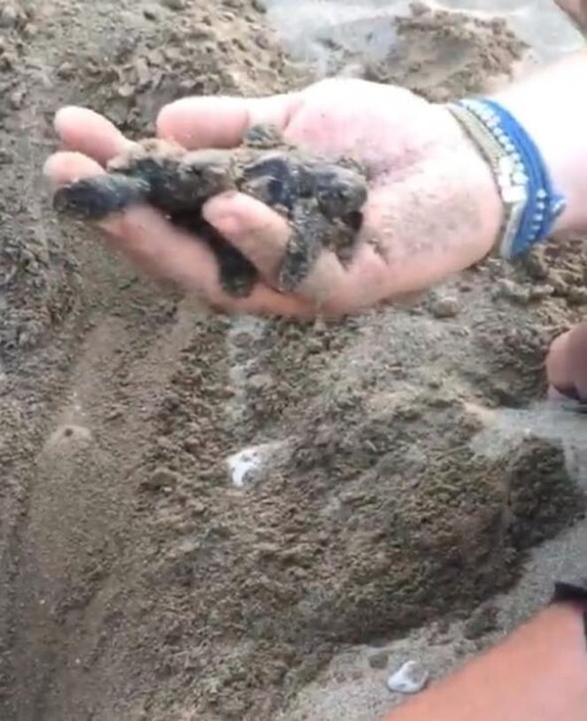 Ekip, caretta carettaların yumurtadan çıkışını izledikten sonra, yavruları denize bıraktı.