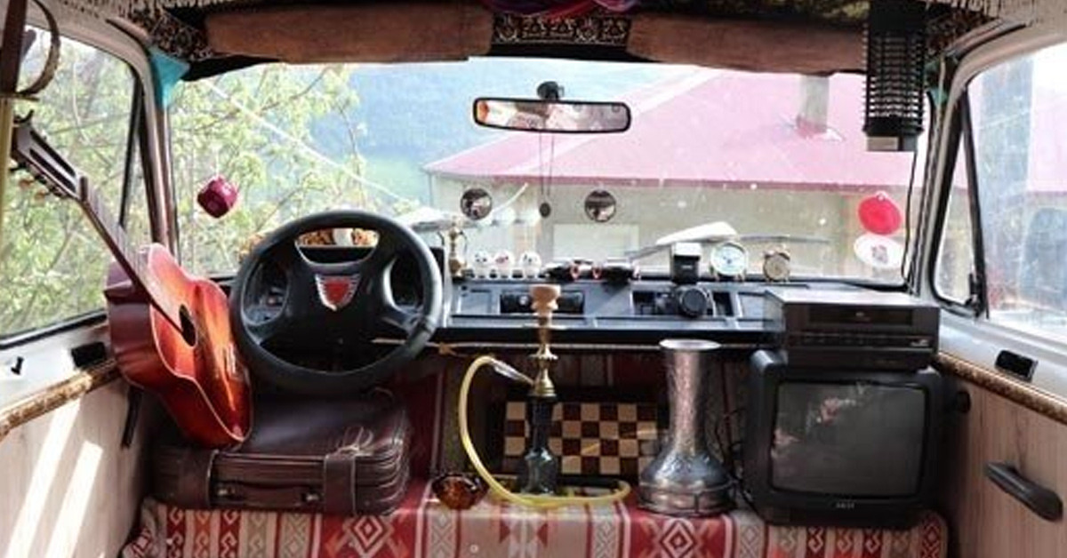 Arabanın içinide vintage eşyalarla düzenleyen genç baba, kızlarına unutulmaz bir alan kurdu.