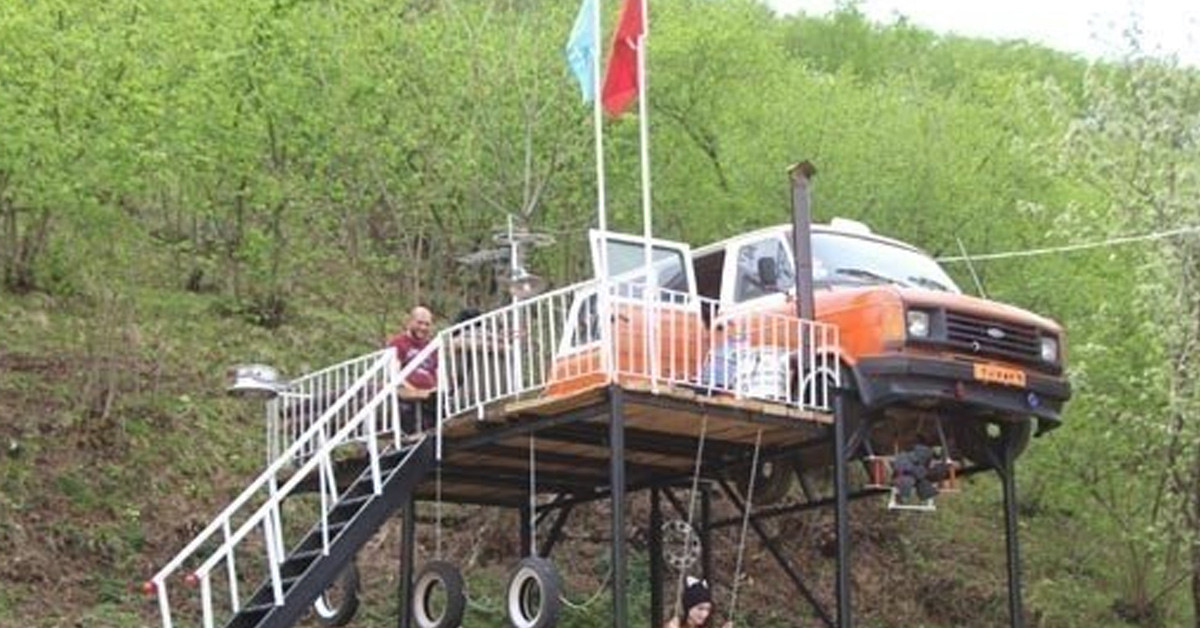 Kızlarının kendisinden ağaç ev istemesi üzerine aklına daha yaratıcı bir fikir gelen Turan, hurdadan araba aldı.