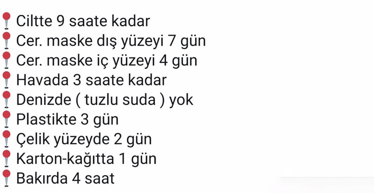 Virüsün nerelerde, ne kadar süre ile durduğunu öğrendik... Virüsün yaşama süresi her gün değişmiş olsa da, bu bizim için önemli bir bilgiydi...