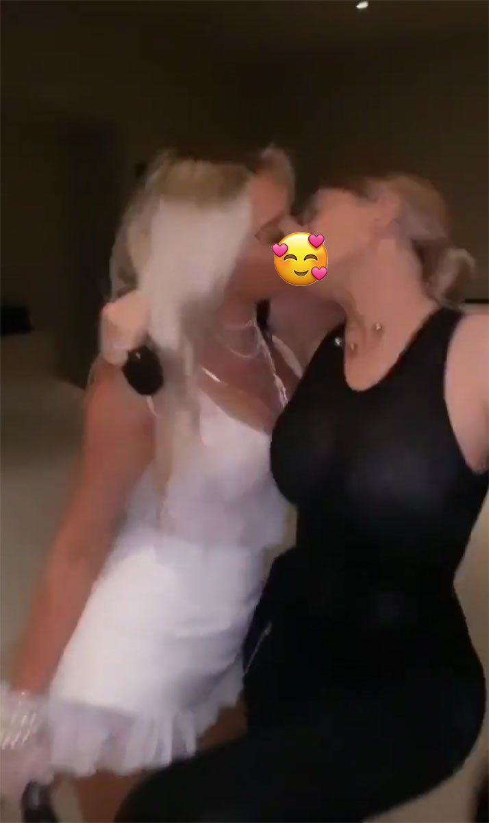 Madonna kılığına giren kylie jenner ve britney spears kılığına giren yakın arkadaşı anastasia karanikolaou, 2003 yılında magazin gündemine damgasını vuran yakınlaşma sahnesini canlandırdı.