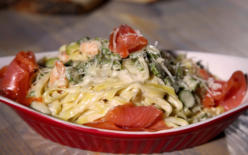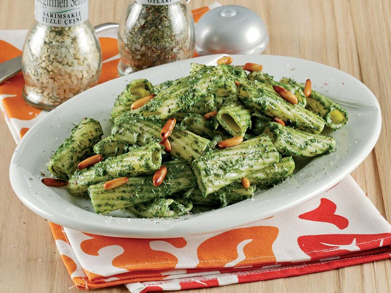 Kuşkonmazlı ve ıspanaklı makarna