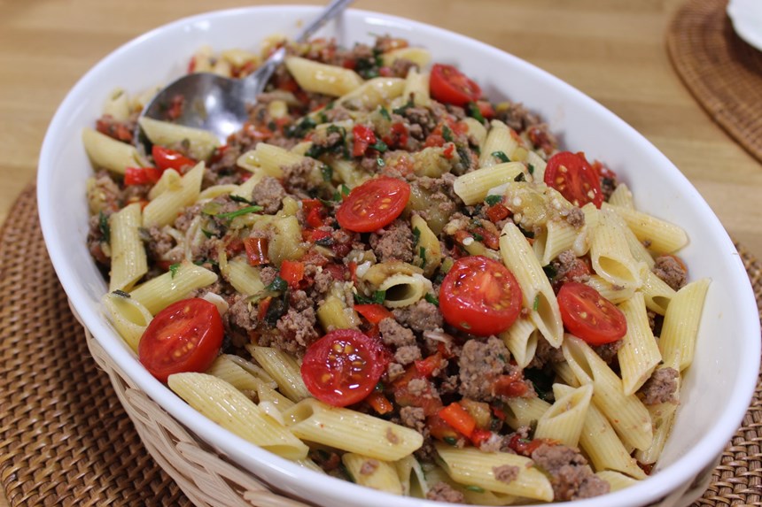Patlıcanlı ve kıymalı makarna