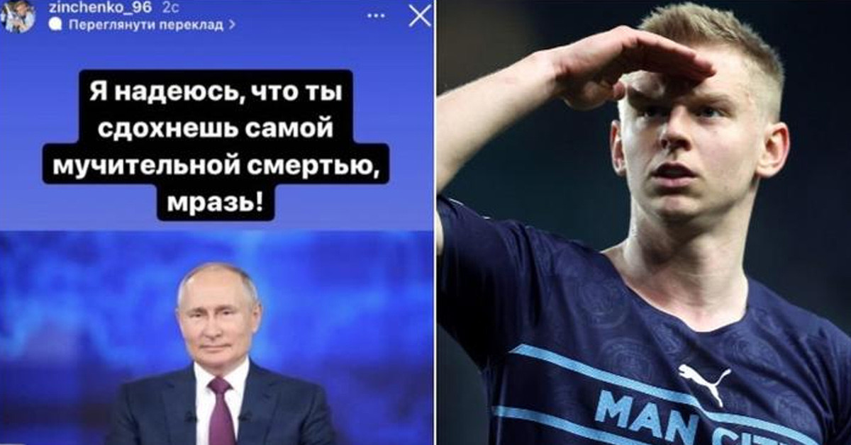 Rusya ile Ukrayna arasındaki savaş dünya kamuoyunun gündemini derinden etkiledi. Rusya'nın, Ukrayna'ya savaş ilan etmesi spor basınında da geniş yer buldu. Son olarak Manchester City'nin Ukraynalı dünya yıldızı Zinchenko'nun Rusya Devlet Başkanı Vladimir Putin hakkındaki sözleri büyük yankı uyandırdı.