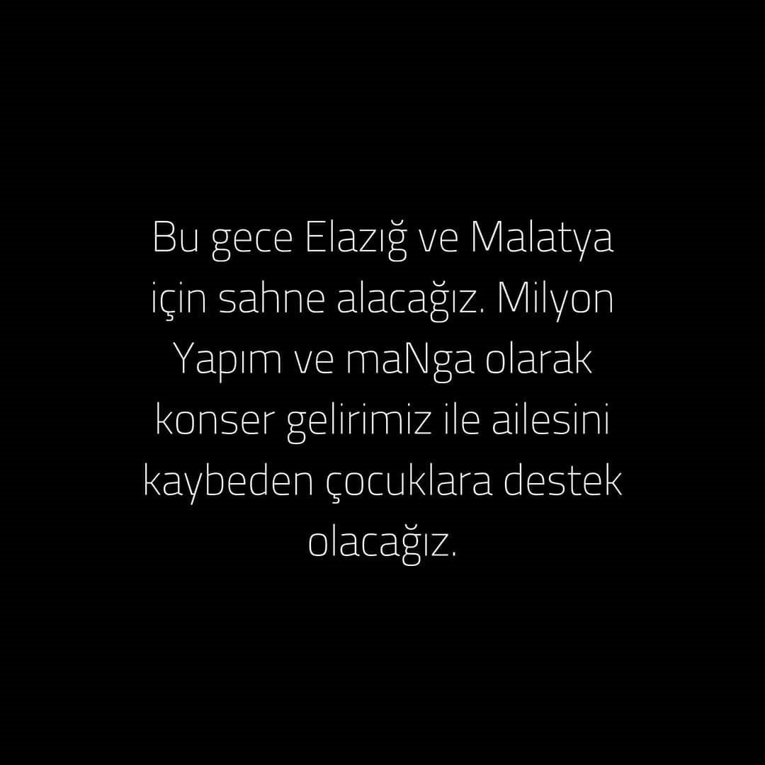 Instagram’dan açıklama yapan manga grubunun üyeleri, konuyla ilgili şu ifadeleri kullandı: “bu gece elazığ ve malatya için sahne alacağız.