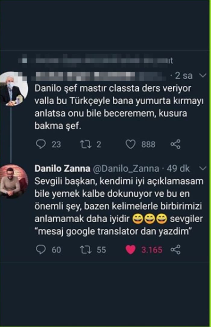 Bir takipçisi ise sosyal medyada danilo şefin türkçesini eleştirdi ve şunları yazdı; 'danilo şef masterclass’ta ders veriyor. valla bana bu türkçeyle yumurta kırmayı anlatsa onu bile beceremem.'