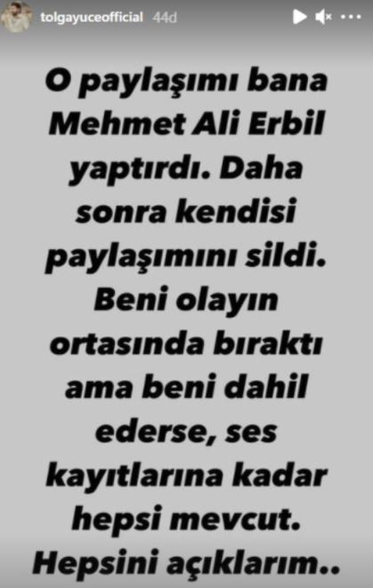 Mehmet Ali Erbil'in yakın dostu oyuncu Tolga Yüce'nin yaptığı paylaşımlar...