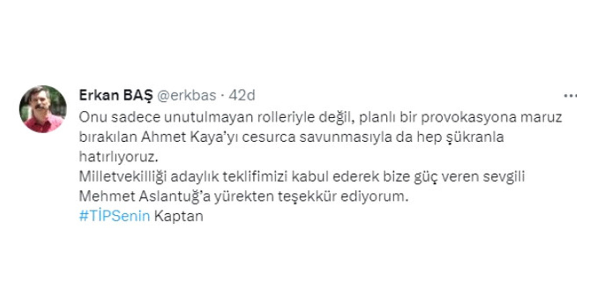 TİP Genel Başkanı Baş ise Aslantuğ için Twitter hesabından yaptığı paylaşımda, şu ifadeleri kullandı: