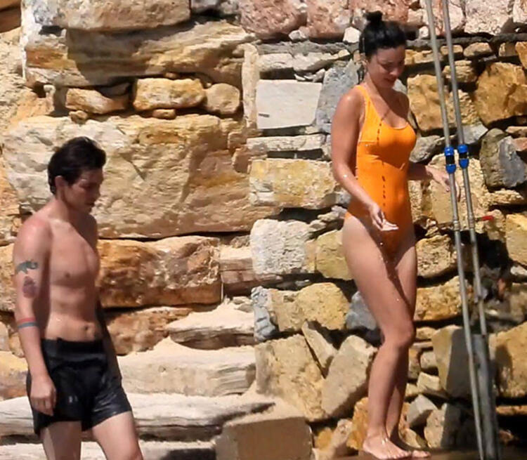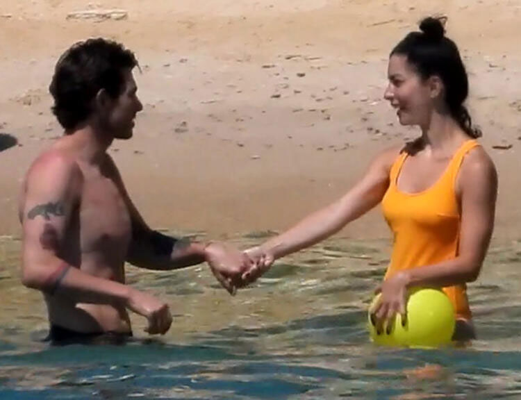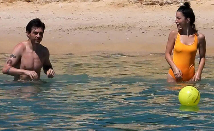 Alaçatı sokaklarında el ele yürürken görüntülenen ve aşkları ortaya çıkan ikili denize girerken görüntülendi.